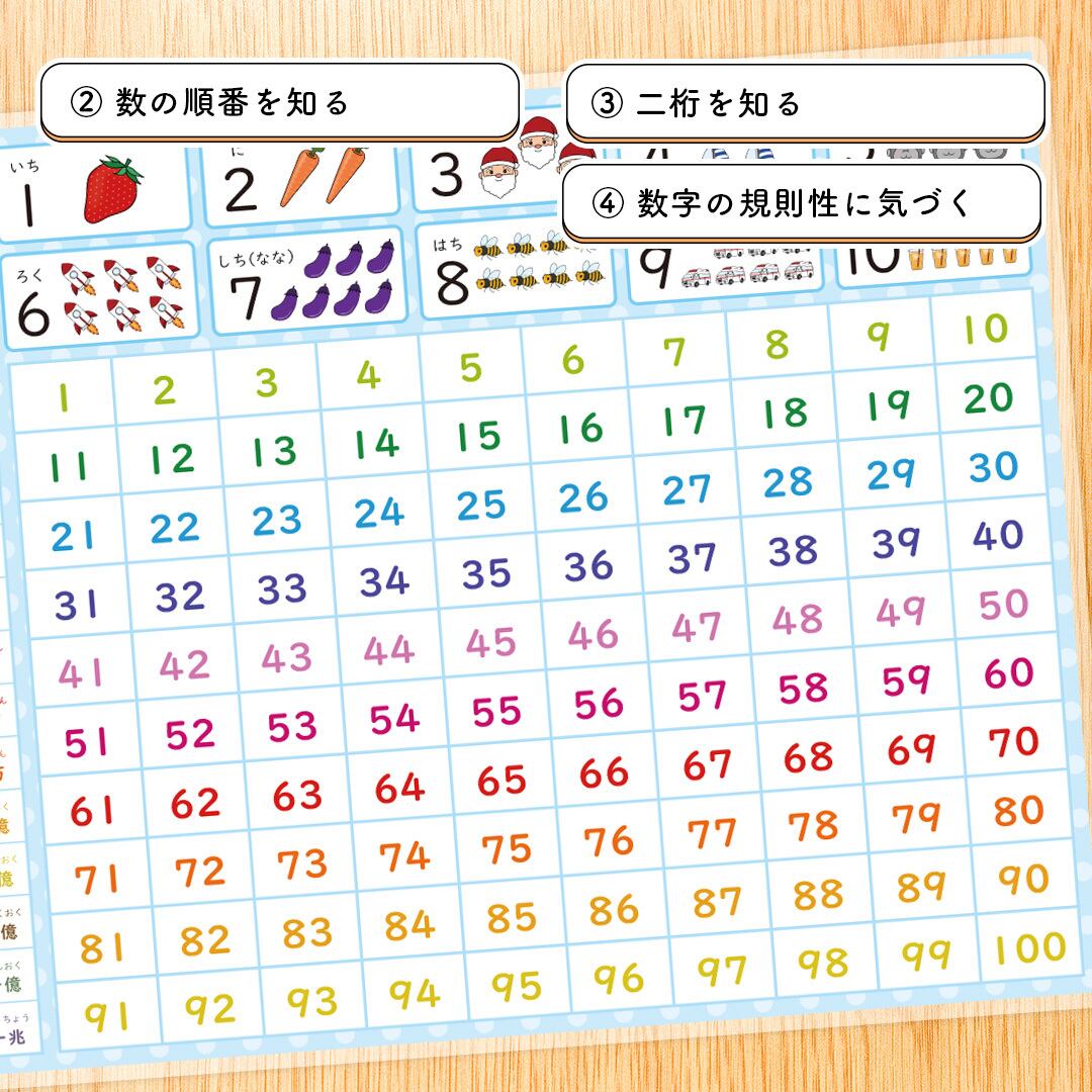 小学生に上がっても使える数の単位表付き。ラミネート加工済みですので、防水で安心。通常の紙と違いさわってもシワ、折れなどができず、長く使えます。