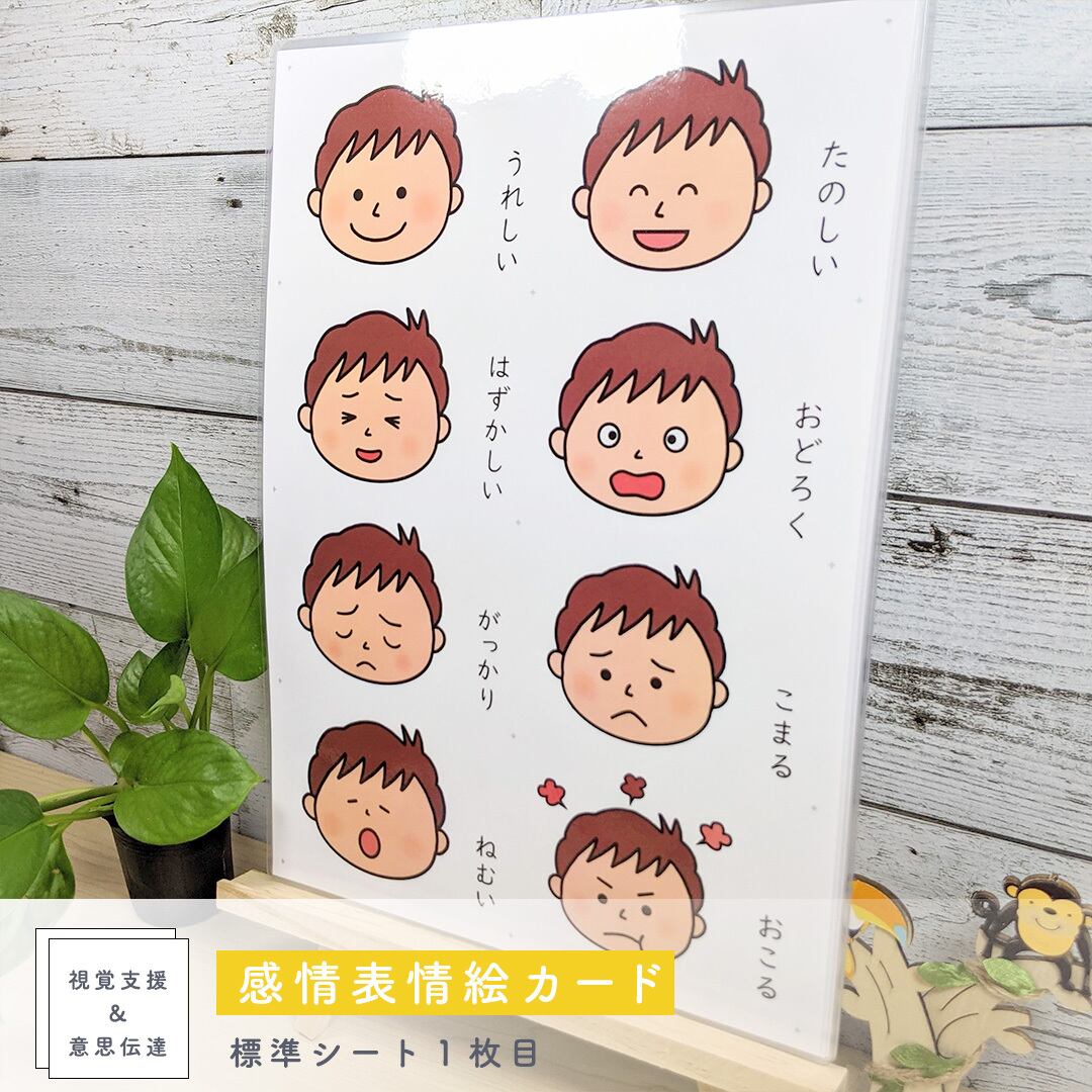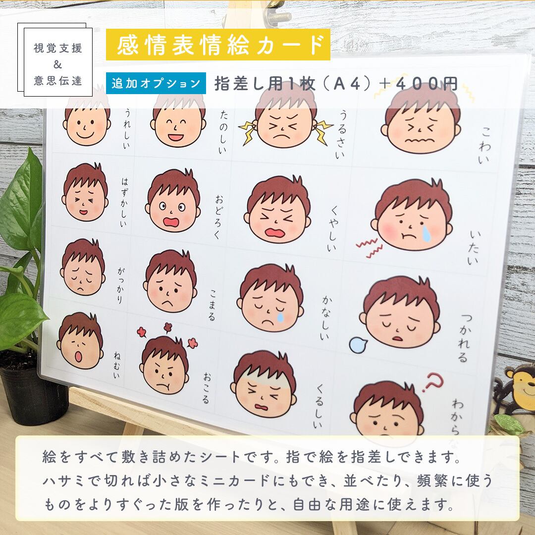 裏面には、お子様に感情を説明したい時や、言葉の意味を尋ねられた時用の簡単な例文があります。文字を読めるお子様なら、反復読みで考えるきっかけにもなります。