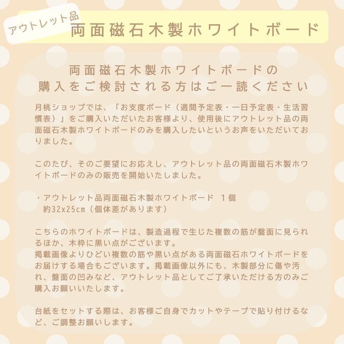 ・アウトレット品両面磁石木製ホワイトボード 1個(台紙セット済)約32x25cm